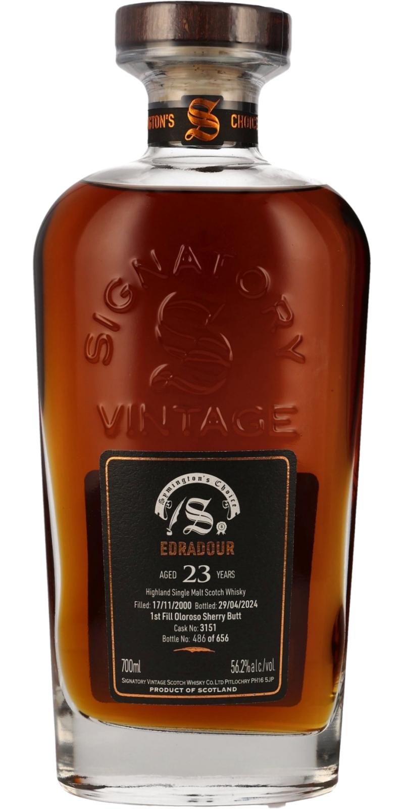 Signatory Vintage is a Scottish independent bottler founded in 1988 by Andrew Symington. It specializes in bottling single-cask Scotch whiskies—often at cask strength, without chill-filtration or added colouring—and releases a wide variety of whiskies spanning both familiar and rare distilleries. In 2002, the company acquired Edradour distillery in Perthshire and now conducts its bottling and warehousing operations on site.